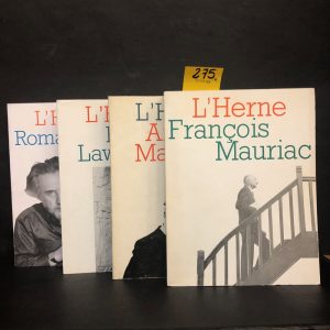 Romain GARY. P., L'Herne, 2005, 4°, br./ D.H. Lawrence. Même édit., 1988, 4°, br./ André MALRAUX. Même édit., 1982, 4°, br. (couv. lég. défraichie et petite tache sur la tranche)./ François MAURIAC. Même édit., 1985, 4°, br./ Ens. 4 vol.
