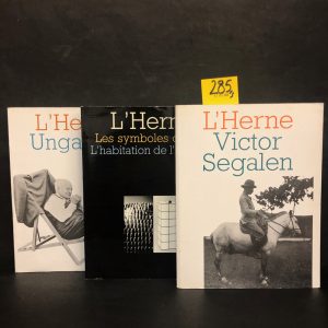Victor SEGALEN. P., L'Herne, 1998, 4°, br./ Les symboles du lieu. L'habitation de l'homme. Même édit., 1983, 4°, br. (bords de la couv. lég. frottés)./ UNGARETTI. Même édit., s.d., 4°, br./ Ens. 3 vol.