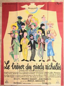 PEYNET (Raymond). — "Le Trésor des Pieds-Nickelés". — Grande affiche réalisée par Peynet pour le film de Marcel Aboulker. — Lithographie en couleurs. — P., impr. de la Cinématographie française, 1950, dim. : 154 x 115 cm (déchirures au...