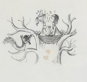 PEYNET (Raymond). — "Le Cuicuiphone". — Encre de Chine sur papier, montée sous passe-partout et cadre noir laqué en bois. Dim. cadre : 40 x 21 cm ; sujet : 20 x 10 cm.