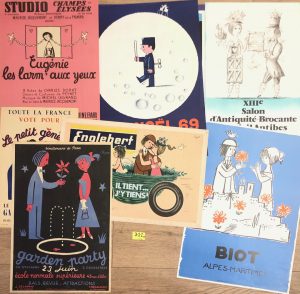 PEYNET (Raymond). — Lot de 13 affiches tirées en lithographie couleurs pour la majorité, ayant trait à diverses publicités (pièce de théâtre, livre, tourisme, ...).
