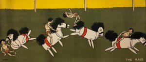 BLANDIN (André). — "The Raid". — Lithographie en couleurs. — Dim. support et sujet : 60 x 124 cm (déchirure).
