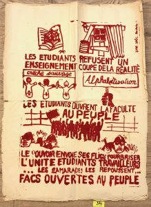 MAI 68.- "Mobilisons-nous pour écraser la vermine fasciste". — Lithographie en rouge double face. — P., Impr. des Beaux-Arts, 1968, dim. : 89 x 65 (plis, déchirures, taches).