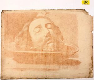ANONYME. — "Saint Jean-Baptiste". — Dessin à la sanguine sur papier vergé filigrané. — École Française du XVIIIe siècle. — Dim. support et sujet : 46 x 60 cm (déchirures, manques marg.).