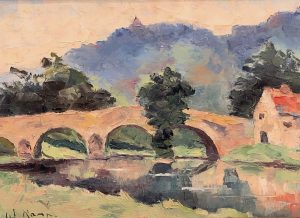 KAMP (Willy). — "Paysage de rivière" (1931). — Huile sur toile, datée et signée au coin infér. gauche, montée sous cadre doré en bois. — Dim. cadre : 35,5 x 44,5 cm ; sujet : 24 x 33 cm.