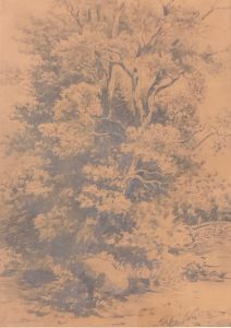 LAUTERS (Paul). — "L'Arbre" (1831). — Crayon sur papier, daté et signé au coin infér. gauche, monté sous passe-partout et cadre argenté en bois. — Dim. cadre : 48,5 x 37,5 cm ; sujet : 35 x 25 cm.