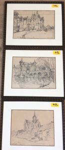 LEDUC (Paul). — "Paysages de Belgique". — Ensemble de 3 dessins au crayon, tous signés, 2 situés et montés sous passe-partout et cadre en bois. — Dim. cadre : 37 x 43 cm et (2 x) 37 x 45 cm ; sujet : 22,5 x 28 cm et (2 x) 22,5 x 30 cm (fines...