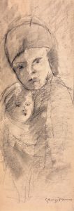 MINNE (George). — "Maternité". — Crayon sur carton, signé au coin infér. droit. — Dim. support et sujet : 28 x 10,5 cm.