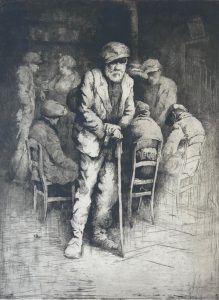 PEISER (Kurt). — "Le Vieux compagnon". — Eau-forte en noir, titrée, signée au crayon et montée sous cadre doré en bois. — Dim. cadre : 68,5 x 53,5 cm ; sujet : 45,5 x 34,5 cm (piqûres marginales).