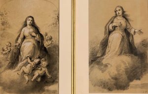 VERBOECKHOVEN (Eugène). — "Jeune femme sur les nuages". — Pastel sur papier rehaussé à la craie, monogrammé au coin infér. droit. Dim. cadre : 54,5 x 39,5 cm ; sujet : 42,5 x 26,5 cm./