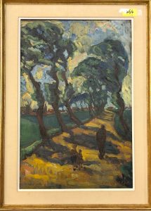 VERVISCH (Jean). — "Paysage animé". — Huile sur toile, signée au coin infér. droit, montée sous passe-partout et cadre doré en bois. — Dim. cadre : 74,5 x 54 cm ; sujet : 60 x 40 cm.
