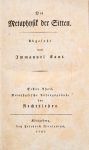 KANT (Emmanuel) Ensemble 2 ouvrages en édition originale. - Die Metaphysik der Sitten. Königsberg, Friedrich Nicolovius, 1797. 2 parties en un volume in-8, cartonnage de papier marbré, dos lisse, étiquette de titre, tranches mouchetées de rouge...