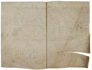 HENRI III. P.S., Fontainebleau 31 mai 1582 ; contresignée par Brulart ; vélin in‑plano (un peu sali sur un bord).
