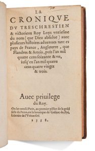 [ROYE (Jean, de.)] La cronique du tres chrestien & victorieux Roy Louys onziesme du nom (que Dieu absolue) avec plusieurs histoires advenues tant es pays de France, Angleterre, que Flandres & Artois, puis l'an mil quatre cens soixante & un, jusqu'en...