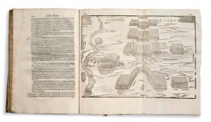 paru en 1599 (cf. Cockle, n°587). 21 planches de vues de bataille gravées sur bois, 2 planches d'ordres de bataille et 2 tableaux dépliants, le tout compris dans la pagination. De la bibliothèque Robert de Billy, avec ex-libris. Brunissure à la pliure de la planche paginée 185-186, avec petite déchirure. Titre sali, mouillure à plusieurs feuillets.