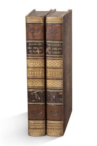 Villes & autres Seigneurs de France. Paris, Imprimerie royale, 1790. 2 volumes grand in-4, demi-veau kaki, dos orné, pièces noires, tranches marbrées (Reliure vers 1820). 120 planches de monnaies finement gravées sur cuivre, dont 10 en supplément. Exemplaire imprimé quelquefois sur papier bleuté. De la bibliothèque Robert de Billy, avec ex-libris.