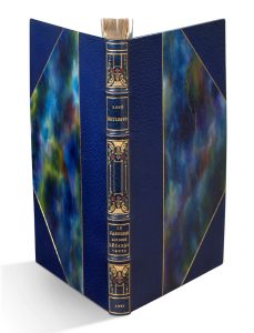 BOYLESVE (René) Le Carrosse aux deux lézards verts. Conte de fées. Paris, Éditions de la Guirlande, 1921. Grand in-8, demi-maroquin bleu cobalt avec coins, dos orné, motifs dorés et mosaïqués, tête dorée, non rogné (Ch. Septier)....