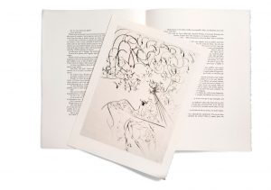 Edition ornée de 20 cuivres originaux pas Salvador Dali. Un des 139 exemplaires sur papier vélin d'Arches blanc (n°284), signé et daté «69» par l'artiste et revêtu du cachet de l'éditeur à l'empreinte de Dali. Joint un marque-page recouvert du même tissu que la chemise et l'étui. S'identifiant au thème, Dali se représentera très souvent en incluant ses autoportraits sur les corps d'homme, de femme ou d'herma­phrodites composant cette série. Des oeuvres traitées par l'Artiste avec une grande liberté qui a su leur donner puissance et mouvement dans son trait. Très bel exemplaire.