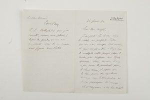 Juliette Adam (2, dont une de 1898 au sujet du 4e centenaire de Vasco de Gama, Prince Auguste d’Arenberg, Agénor Bardoux (3, sur les discussions du Budget), le banquier Raphaël-Louis Bischoffsheim (4, 1892-1895, au sujet de l’observatoire du Mont-Blanc), Ferdinand Brunetière (2), baron Denys Cochin (2 : « vous avez besoin d’un trésorier pour les fonds de l’Observatoire du Mont-Blanc [...] Je serais très heureux de vous aider, si je le puis en cette œuvre d’un grand intérêt scientifique »...), Édouard Delessert (2), Paul Deschanel (l.s., 1906, au sujet de l’Observatoire de Meudon), Antonin Dubost, Isabelle comtesse d’Eu, Charles de Freycinet, Alfred Grandidier (6 très intéressantes et longues lettres, 1857-1859, autour du voyage en Amérique qu’ils entreprirent ensemble pour déterminer la position de l’Équateur magnétique au Pérou, et où Janssen tomba gravement malade), Octave Gréard (2), comtesse Greffulhe (1901, l’aidant à trouver un trésorier pour les fonds de l’Observatoire du Mont-Blanc), Ludovic Halévy (1889), Gabriel Hanotaux (1893), Émile Labiche (1897), Charles Lefebvre (1889, sur leur club La Marmite, et organisation d’un dîner en Juin à la Tour Eiffel, « pour que La Marmite soit une des premières sociétés dînant à la Tour »), G. Lenôtre, Louis Liard (5), Mounet-Sully, Gustave Noblemaire, Frédéric Passy (3), baronne Alphonse de Rothschild (4), Léon Say (5, 1891-1895, au sujet des statuts de la société pour le projet d’observatoire au Mont-Blanc), Auguste Scheurer-Kestner (2), Henri Schneider (2), Jules Simon (3, à propos de lunettes astronomiques), Sully-Prudhomme (1894, ses principes scientifiques concordent avec les siens, à part sur l’origine de la vie terrestre. Il lui envoie « l’élucubration que j’ai eu l’audace de publier sur ces matières dans une revue de métaphysique », etc.), Charles Terrier (5), etc.{CR} On joint 8 L.A.S. adressées à Mme Janssen par Raphaël Bischoffsheim, Isabelle comtesse d’Eu (5), Étienne Lamy, Frédéric Passy (1908)…