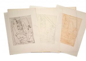 illustrant ses poèmes qui apparaissent ici pour la première fois. Un des 50 premiers exemplaires comportant une eau-forte originale de Picasso «Le Couple» en 3 états: une épreuve en noir, une en brun et une épreuve en vert barrée, toutes sur Chine. Seuls les grands papiers contiennent l'eau-forte non barrée. Exemplaire en très bel état.