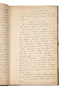 Bruxelles au début des années 1890. Journaliste, écrivain et critique d'art belge, Ernest Verlant se lia d'amitié avec les jeunes poètes belges, et participa à l'aventure de La Jeune Belgique. Il fut journaliste au Journal de Bruxelles, et, de 1891 à 1899, chef de bureau au ministère de la Justice, avant de passer en 1899 à la direction des Beaux-Arts, où l'appelait son intérêt prononcé pour l'art. Ce journal est commencé le 3 février 1890, et est tenu jusqu'en 1894. Verlant y consigne spectacles (opéra, théâtre), conférences (auxquelles il assiste, et ses propres conférences), expositions, rencontres, lectures, dîners et banquets, échos politiques, affaires judiciaires, voyages, son activité de journaliste et d'écrivain, etc., y insérant de nombreuses coupures de presse. Il est souvent question d'Iwan GILKIN, Valère GILLE, Albert GIRAUD, Georges RODENBACH, Émile VERHAEREN, Maurice MAETERLINCK, Edmond PICARD, Grégoire LE ROY, Henry de GROUX, Georges EEKHOUD, Gustave KAHN, Camille LEMONNIER, Eugène DEMOLDER, etc., ainsi que de nombreuses personnalités du monde bruxellois, de l'aristocratie, de la politique, du journalisme, des arts, etc. On notera notamment les pages consacrées à la conférence de Stéphane MALLARMÉ sur Villiers de l'Isle-Adam (11 février 1890); à la visite du salon des XX (18 février 1890); à l'affaire Georges NIETER; à l'aventure La Jeune Belgique; aux lettres de Félicien ROPS à Demolder; au Sâr PÉLADAN et à la Rose+Croix; au séjour de Paul VERLAINE à Bruxelles (février 1893); au banquet EEKHOUD (octobre 1893), etc.On joint Le manuscrit autographe de son journal tenu pendant la guerre et l'occupation allemande en 1915, publié en 1920 sous le titre L'OEil sur les Ostrogoths (225 p. in-fol., relié); le manuscrit autographe de sa pièce Héraklès libérateur, 7-18 juillet 1917 (50 p. in-fol., relié); son livre La Peinture ancienne à l'exposition de l'Art Belge à Paris en 1923 (Bruxelles et Paris, G. Van Oest & Cie, 1924, relié); le n° de la revue Pourquoi pas ? à lui consacré (2 avril 1914); et le livre de Ray Nyst, Malgré tout ! (1919, débroché, avec longue dédicace à Verlant).