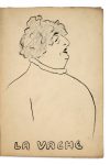 Maquette originale de cet album zoologique de neuf dessins, publié en 1906, comprenant les neuf dessins originaux, y compris La Bête à Bon Dieu, non mentionnée sur la page de titre, ainsi que la dédicace à Laurent Tailhade. Décrit comme un «album zoologique», il rassemble neuf caricatures de personnages, désignés par des noms d'animaux. L'album Le Taureau, Le Veau, Le Maquereau, Le Chat, Le Lapin, La Bête à Bon Dieu, Le Crapaud, La Vache, La Poule (Grande Imprimerie de Montrouge, H. Belleville, Paris, [1906]) a été publié très probablement à compte d'auteur, vendu 10 F (quelques exemplaires sur grand papier étaient réservés à l'auteur et ses familiers; il est constitué d'un titre formant couverture, d'une dédicace à Laurent Tailhade et de neuf planches de dessins de Sacha Guitry.ProvenanceSacha Guitry.