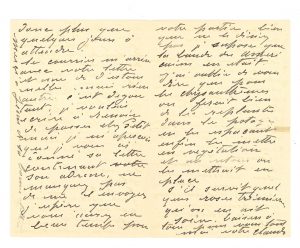 fameuse journée de travail hier, et quel temps superbe. J'étais un peu remonté et me promettais de la besogne pour aujourd'hui, mais ce matin le soleil est voilé. J'espère cependant pour tantôt. Que de mal, et maintenant chaque jour mauvais est pour moi un crève-coeur. Enfin. J'ai beaucoup de lettres à faire. Je profite de cette matinée car il me faut songer à mes cadres car au retour il serait trop tard. C'est très difficile, ne sachant guère ce que je pourrai exposer, ni seulement si l'exposition aura lieu, étant toujours sans nouvelles. Il compte être de retour dans une semaine: Je ne puis dépasser cette limite ce n'est donc plus que quelques jours à attendre (...) Je voulais écrire à RENOIR de passer chez Petit mais je m'aperçois que je vous ai donné sa lettre contenant son adresse, ne manquez pas de me l'envoyer (...). Il donne des instructions pour replanter les chrysanthèmes dans le potager. S'il survit quelques roses trémières qu'on en ait soin. Baisers à tous