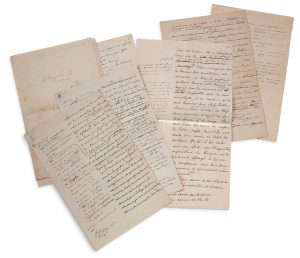 d'une lettre de Joseph BONAPARTE à sa mère, Londres 24 avril 1833: il l'invite à donner sa procuration pour la succession du «jeune Napoléon» [l'Aiglon, Napoléon II], et la met au courant de la succession de l'Empereur, faisant part de l'opinion des avocats concernant les armes de l'Empereur (3 p. in-4). * Copie d'une lettre du cardinal Joseph FESCH au général Arrighi, duc de Padoue, Rome 28 décembre 1833: Madame s'en remet au comte de Survilliers [Joseph Bonaparte] pour la décharge générale, et donne des instructions concernant les armes et d'autres objets de l'Empereur (1 p. in-4). * L.A.S. du cardinal FESCH, à son neveu Joseph Bonaparte, Rome 2 janvier 1834, sur le voeu de Madame que les dispositions de l'Empereur soient exécutées sans transaction ni procès avec Laffitte (2 p. in-8, en italien). * 2 copies de la transaction entre le duc de PADOUE, agissant pour Madame Mère, et Jacques LAFFITTE, 8 janvier 1834 (10 p. in-4). * Copie d'une lettre de Joseph BONAPARTE au duc de Padoue, Londres 20 janvier 1834, demandant des éclaircissements sur les rap­ports entre les droits de la mère de l'Empereur et la succession du Prince Eugène (1 p. in-4). * L.S. de l'avocat PATORNI au duc de Pa­doue, Paris 5 mars 1834, évoquant les droits respectifs de Madame Mère et des époux SEMONVILLE (2 p. in-4). * 2 brouillons successifs, avec additions et corrections autographes, d'une lettre de JOSEPH BONAPARTE à sa mère, 23 mars 1834, évoquant le déficit en caisse et la pro­position parlementaire d'amnistier leur famille (5 p. in-4). * L.S. en partie autographe du cardinal FESCH à son neveu Joseph Bonaparte, Rome 1er avril 1834 (2 p. in-8, en italien), notamment au sujet des domaines dans l'île d'Elbe. * L.S. du duc de PADOUE au cardinal Fesch, Paris 8 avril 1834, évoquant l'éventuelle abro­gation de la proscription de la famille de l'Empereur, et donnant des conseils; il tait certaines initiatives à Madame. Il est aussi question de la maison natale de l'Empereur (6 p. in-4). * Copie d'une lettre de Joseph BONAPARTE au duc de Padoue, Londres 15 décembre 1834, sur la disposition des effets de l'Empe­reur, qui appartiennent aujourd'hui à Madame (1 p. in-4). * L.S. du duc de PADOUE à Joseph Bona­parte, Paris 10 février 1835, au sujet des exécuteurs testamentaires de Napoléon, de la succession Ramolino, des médailles et de l'argenterie de l'Empereur etc. (11 p. in-8). * L.A.S. du général Henri BERTRAND à Jo­seph Bonaparte, Paris 20 février 1835: il est intervenu auprès des dépositaires d'objets de l'Empereur pour accomplir les intentions de Joseph (1 p. in-4). * Copie de lettres de Joseph BONAPARTE à sa mère, et à son oncle le cardinal Fesch, Londres 3 mars 1835, à propos de la maison natale de l'Empereur (2 p. in-4). * Copie d'une lettre de Joseph BONAPARTE au duc de Padoue, Londres 10 avril 1835: Madame se croit le meilleur juge de l'emploi des objets de son fils et son petit-fils (2 p. in-4). * L.S. du duc de PADOUE à Joseph Bona­parte, Paris 22 avril 1835: sur l'exécution du testament, les objets de l'Empereur et la conservation de sa maison natale (4 p. in-4). * 3 L.S. du duc de PADOUE au cardinal FESCH. Paris 22 avril 1835, donnant des détails sur les médailles et les armes de l'Empereur (3 pp. ¼ in-4, adresse). 25 février 1836: condoléances sur la mort de Madame; il espère que la distribution des objets de l'Empereur s'est faite à temps. 19 mai 1836, évoquant la succession de Madame, et son propre désir de posséder un des objets de l'Empereur destinés au Roi de Rome (8 p. in-4). * L.S. du duc de PADOUE à Joseph Bona­parte, Paris 18 novembre 1836: il est question de la succession de Madame et celle de l'Empereur, de la loi d'exil, et des difficultés éprouvées par la reine Caroline à la suite de «l'événement de Strasbourg» [l'équipée de Louis-Napoléon] (8 p. in-4).ProvenanceArchives de JOSEPH BONAPARTE (Fontainebleau 31 janvier 2004, n° 252)