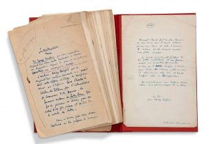 SACHS Maurice (1906-1945) Les Jeunes Visiteurs, manuscrit en partie autographe et signé S.d., 142 pages in-8 à l'encre, sous chemise demi-maroquin rouge, étui (J.-P. Miguet). Manuscrit de travail de cette traduction française de The Young...