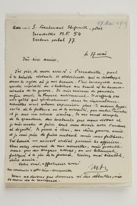 Belle correspondance de l’ancien assistant de Janssen à l’Observatoire de Meudon, aviateur dans l’armée française pendant la guerre de 1914-1918. Les lettres sont écrites pour la plupart de Chartres, du Bourget et de divers secteurs postaux militaires.{CR} [27 décembre 1914]. Son voyage est ajourné : « J’ai reçu une mission scientifique à Paris : mettre au point ma dernière invention qui paraît très intéressante »… [Chartres 30.I.1915] : « Les officiers m’ont reçu en ami. J’ai l’autorisation de coucher à l’hôtel [du Grand Monarque] étant assimilé (comme chevalier de la Légion d’honneur) au grade d’officier. Ce serait un avantage énorme sans les frais qui s’en suivent »… 2 février : « je suis en service de 6 h du matin jusqu’au soir. Je rentre en ville vers 18 h – très très fatigué mais content. Je vole tous les jours »… [7 mars] : il se rétablit et a pu reprendre ses vols, mais est encore faible. « Probablement mardi je vais subir les épreuves pour le brevet de A.C. (l’Aéro-Club) et dans un mois je serai déjà breveté militaire »… [28 avril] : « J’arrive à l’instant à Paris pour partir demain à la réserve générale d’aviation d’où je serai dirigé au front »… 13 mai. « J’aime la France, parce que je crois qu’elle continuera sa mission sublime : d’être gardien intrépide de l’idéal humanitaire. Toute mon âme vibre d’enthousiasme pur et résolu, ainsi que d’impatience de prouver par les actes que mon patriotisme est simple et sincère, parce que raisonné et enracinné dans mon cœur de slave » … 17 mai. « J’ai pris, de mon arrivée à l’escadrille, part à la bataille violante et victorieuse qui se développe dans la région ou je me trouve. […] Je suis heureux de pouvoir enfin servir la France activement. […] Je me rend compte de la grandeur des instants que nous vivons et je suis résolu de faire tout mon devoir avec l’ardeur et dignité » … Nisch (Serbie) 22 septembre : il arrive à Nisch, « heureux de pouvoir servir la Serbie, puisque je servirai en même temps la France. J’aime la France, qui est réellement noble et grande, malheureusement elle n’est pas toujours bien représentée »… Suivent 2 cartes postales de 1916 (Udine et Vérone)…