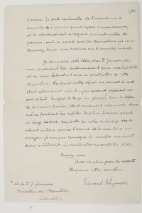20 mai 1895. Long rapport sous forme de lettre sur ses expériences avec le baromètre sur le Mont Blanc. Après avoir rappelé trois méthodes pour déterminer l’altitude en montagne – le baromètre à mercure, le baromètre anéroïde, l’observation de la vapeur d’eau – et quelques publications et expériences qu’il a faites dans ce domaine, Whymper raconte son expédition de juillet 1894, faisant référence à ses devanciers, Balmat, Paccard, Saussure, et renvoyant à des photographies numérotées. Après deux semaines de conditions atmosphériques défavorables, il quitta Chamonix le 22 avec ses guides et porteurs, empruntant la route du « Corridor », et se dirigeant vers le refuge de Janssen sur les Rochers rouges, où il passa une nuit et un jour de tempête, avant de gagner l’Observatoire… Observations visuelles, précisions sur la température, relevés barométriques (commentaire sur la marge d’erreur). Il termine en remerciant son confrère de son « hospitalité », et en le félicitant sur la solidité de son observatoire : même pendant les rafales les plus furieuses, « quand la neige déchiré des pentes de notre entourage était volant autour comme l’écume de la mer dans un ouragan, je n’ai pas remarqué le moindre mouvement dans le bâtiment »…{CR} 4 mai 1895. Son accident l’a « réduit à demi force », pendant plus de deux mois, mais il enverra dès que possible « une petite relation de mes quatre jours sur le sommet du Mont Blanc »…1er juin 1900. Boissonnas a tardé à communiquer une épreuve de son portrait de Janssen, et « a envoyé l’agrandissement avec des autres de ses ouvrages à l’Exposition sans avoir eu votre approbation »…