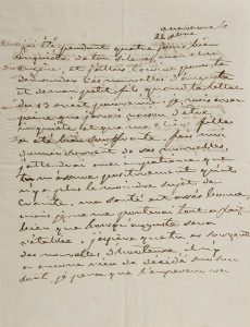 Belle et tendre lettre de l’ex-impératrice, s’inquiétant de l’état de sa belle-fille, Auguste de Bavière, qui avait donné naissance à un fils le 9 décembre, et évoquant le sort de sa fille Hortense, ex-Reine de Hollande.{CR} « J’ai été pendant quatre jours bien inquiète de ton silence, mon cher Eugène, et j’allais t’écrire pour te demander des nouvelles d’Auguste et de mon petit-fils, quand ta lettre du 13 m’est parvenue. Je vois avec peine que j’avais raison d’être inquiète, et que ma chère fille a été bien souffrante. Fais moi donner souvent de ses nouvelles, j’attendrai avec impatience que tu m’assures positivement qu’il n’y a plus le moindre sujet de crainte. Ma santé est assés bonne, mais je ne me porterai tout à fait bien que lorsqu’Auguste sera rétablie. J’espère que tu as souvent des nouvelles d’Hortense, il n’y a encore rien de décidé sur son sort, je pense que l’empereur va s’en occuper dans ce moment ayant fixé l’apanage du roi. Elle attend avec impatience de voir son sort assuré. Elle n’a pas pu venir à Navarre depuis que j’y suis, je compte qu’elle viendra le mois prochain. Adieu mon cher Eugène, tu sais combien ma tendresse pour toi est grande »…