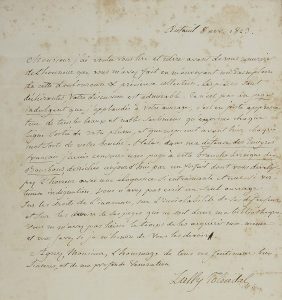 Trophime-Gérard, marquis de LALLY-TOLENDAL (1751-1830) homme politique et écrivain. L.A.S., Auteuil 8 novembre 1823, à l’avocat André Dupin ; 1 page in-4, adresse (lég. rouss.).