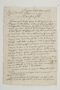 Bel ensemble de lettres familiales.{CR} Sa mère, la veuve Philippe Larrey (2, en 1806 s’inquiétant de ne pas avoir de nouvelles depuis sa dernière campagne, et en 1813 pour le remercier de sa lettre qui calme son imagination et ses angoisses) ; sa sœur, la veuve Geneviève Larrey (1815, nouvelles rassurantes sur la santé de leur mère) ; son frère, François Larrey (conseils pour la guérison de son fils Hippolyte) ; son cousin, Alexis Larrey (1815, soutien face à la rumeur de sa possible rétrogradation) ; son neveu Auguste Larrey (1836, sur l’indignation que suscite sa révocation).