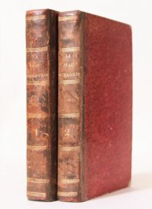 La Peau de chagrin. Roman philosophique. Paris, Charles Gosselin, Urbain Canel, 1831. 2 volumes in-8, demi-basane brune avec petits coins de vélin, dos lisse, tranches jonquille (Reliure de l'époque). Édition originale.