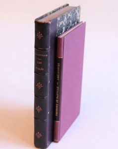 Améthystes. Nouvelles odelettes amoureuses composées sur les rythmes de Ronsard. Paris, Poulet-Malassis, 1862. In-16, bradel percaline violette, pièce de titre en long, couverture et dos (Honnelaître). Édition originale.