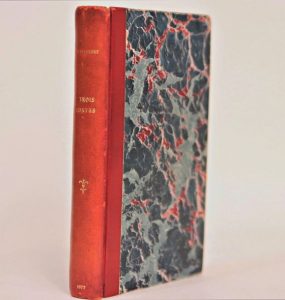 Trois contes. Paris, Charpentier, 1877. In-12, demi-chagrin rouge, dos lisse, non rogné (W. Wirz). Édition originale de ce recueil célèbre, contenant Un cœur simple, La Légende de Saint Julien l'Hospitalier et Hérodias.