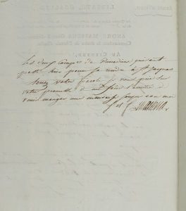 « Tenez la main à ce que les abattis de St Jacques et de Melegno se fassent le plus tôt possible et bien étendus ». Il a écrit au Commissaire ordonnateur au sujet de la paille nécessaire à la seconde ligne : « J’espère qu’il s’en occupera ». Il transmet deux ordres pour le départ de la compagnie de grenadiers de la 166e et quatre compagnies du 2d bataillon de la 70e. « Tenez votre parole je vous prie sur votre promesse de me faire l’amitié de venir manger une mauvaise soupe avec moi ».