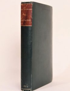Gavarni. L’Homme et l’œuvre. Paris, Henri Plon, 1873. Grand in-8, bradel de percaline verte, pièce de titre brune, couverture (Pierson). Édition originale, ornée d'un portrait-frontispice gravé à l’eau-forte par Léon Flameng d’après Gavarni et de 2 ff. de fac-similé hors texte.