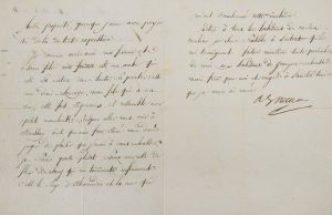 Étonnante lettre à son retour d’Égypte.{CR} Il a reçu sa lettre avec grand plaisir, la première reçue depuis son départ de France, il y a quatre ans, probablement à cause des Anglais, qui ont « soufflé la majeure partie de nos bâtimens. Malgré tout ce que vous pouvez dire, mon cher frere, malgré les trahisons, malgré l’immoralité, malgré que j’aye fait tout ce que j’ai pu pour conserver l’Egypte, je serai toujours inconsolable de la perte de cette belle propriété, parce que j’aime mon pays au delà de toute expression. Je ramene avec moi ma femme et mon fils. Ma femme est une arabe qui est la nature dans toute sa pureté ; c’est une demi-sauvage. Mon fils qui a un an, est fort, vigoureux, et ressemble un petit mamlouk. J’espère aller vous voir à Boussay, ainsi que mon frere aîné. Vous devez juger du plaisir que j’aurai à vous embrasser. Je serois parti plutôt sans un reste de flux de sang qui me tourmente infiniment. C’est le siege d’Alexandrie et la mer qui m’ont occasionné cette maladie »…