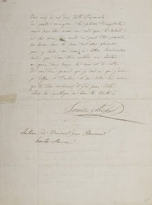 Rare et long poème de jeunesse, de 76 vers, inspiré par un texte sur la graphologie du journaliste Auguste Vitu (1823-1891), dans Le Livre des 400 auteurs (aux Bureaux du Magasin des Familles, 1850), « Physionomie de quelques signatures ». La jeune Louise, âgée de vingt ans, raille Vitu :{CR} « Des ombres du tombeau, Nostradamus s’éveille,{CR} Aux clameurs d’ici-bas il a prêté l’oreille,{CR} Et porteur d’un secret appris dans les tombeaux{CR} Vient de la capitale attrouper les badauds ; […]{CR} Au milieu de Paris tombant à l’improviste,{CR} Sous le nom de Vitu le voilà journaliste,{CR} Étalant à nos yeux du fond de son bureau,{CR} Pour juger les humains, un système nouveau,{CR} On pourra désormais, dans chaque signature,{CR} Connaître de chacun et l’esprit et l’allure »…{CR}Et elle conclut :{CR} « Je défie et l’auteur et son lutin lui-même{CR} Qu’il dise seulement, si j’ai pour déïté{CR} Choisi la république ou bien la liberté ».