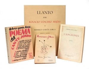 Primero romancero gitano 1924-1927. Madrid, Revista de Occidente, 1928. In-12, broché, couverture illustrée, emboîtage moderne. Édition originale.