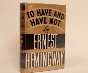To Have and Have not. New York, Charles Scribner's sons, 1937. In-12, bradel cartonnage noir, dos lisse, jaquette noire et dorée (Reliure de l'éditeur). Édition originale.