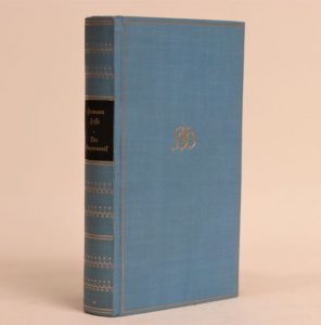 Der Steppenwolf. Berlin, G. Fischer, 1927. In-12, bradel toile bleue, encadrement et initiales de l'auteur au centre dorés, dos lisse (Reliure de l'époque). Édition originale du Loup des Steppes.