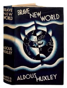 Brave New World. Londres, Chatto & Windus, 1932. In-8, bradel percaline bleue, jaquette illustrée (Reliure de l'éditeur). Édition originale du Meilleur des mondes, un des principaux chefs-d'œuvre de la littérature de science-fiction.