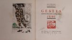 Gestes, suivis des Paralipomènes d'Ubu. Paris, Le Sagitaire, 1921. In-12 carré, demi-maroquin vert avec coins, dos lisse orné, tête dorée, couverture et dos (Reliure de l'époque). Édition originale, ornée de 7 eaux-fortes originales, dessins et bandeaux en couleurs dans le texte.