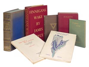 The Mime of Mick, Nick and the Maggies. La Haye, The Servire press, 1934. In-8, broché, couverture illustrée, non coupé, étui de l'éditeur. Édition originale, ornée d'une illustration de couverture, d'une lettrine et d'un cul-de-lampe par Lucia Joyce, la fille de l'auteur.