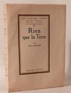 Rien que la Terre. Voyage. Paris, Bernard Grasset, 1926. Petit in-4, broché, couvertures crème et verte, non coupé, non rogné. Édition originale.