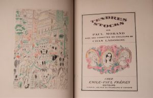 Tendres stocks. Paris, Émile-Paul frères, 1924. In-8, demi-maroquin vert avec coins, filets dorés, dos lisse, gardes de moire verte, couverture et dos (Reliure de l'époque). Première édition illustrée de ce recueil de trois nouvelles, précédées, comme l'édition originale de 1921, d'une préface de Marcel Proust.
