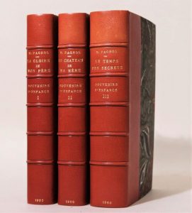 La Gloire de mon père. – Le Château de ma mère. – Le Temps des secrets. Monte-Carlo, Pastorelli, s.d. [1957-1960]. 3 volumes in-12, demi-veau rouille, couverture et dos (Honnelaître). Éditions originales.